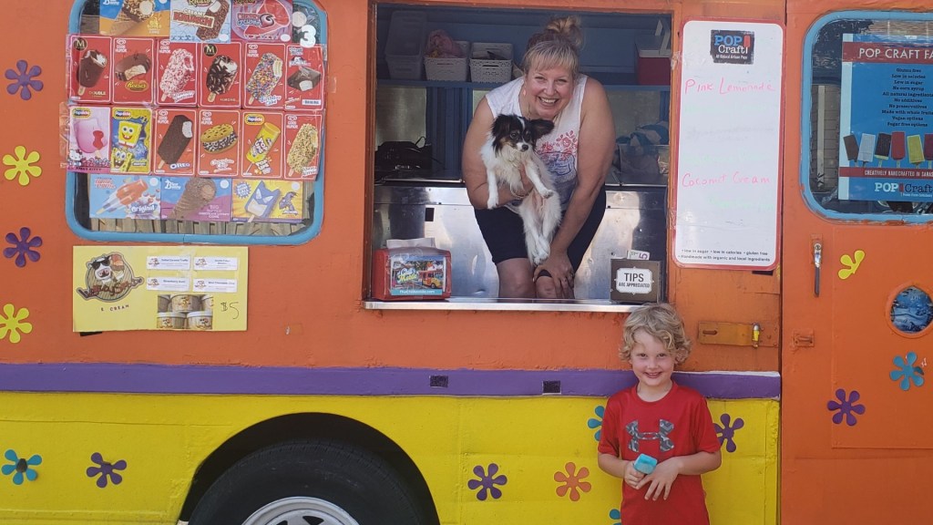 The ice cream trucks make this a regular stop on the route. One even takes credit cards!! Oh joy!! Since we rarely carry cash nowadays.
